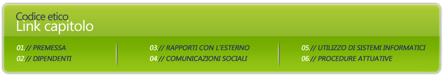 L’utilizzo di strumenti informatici nell’esercizio delle mansioni lavorative affidate dalla Società è soggetto alle condizioni previste dai contratti di licenza e dalle norme giuridiche in vigore nonché dai principi espressi in questo Codice.